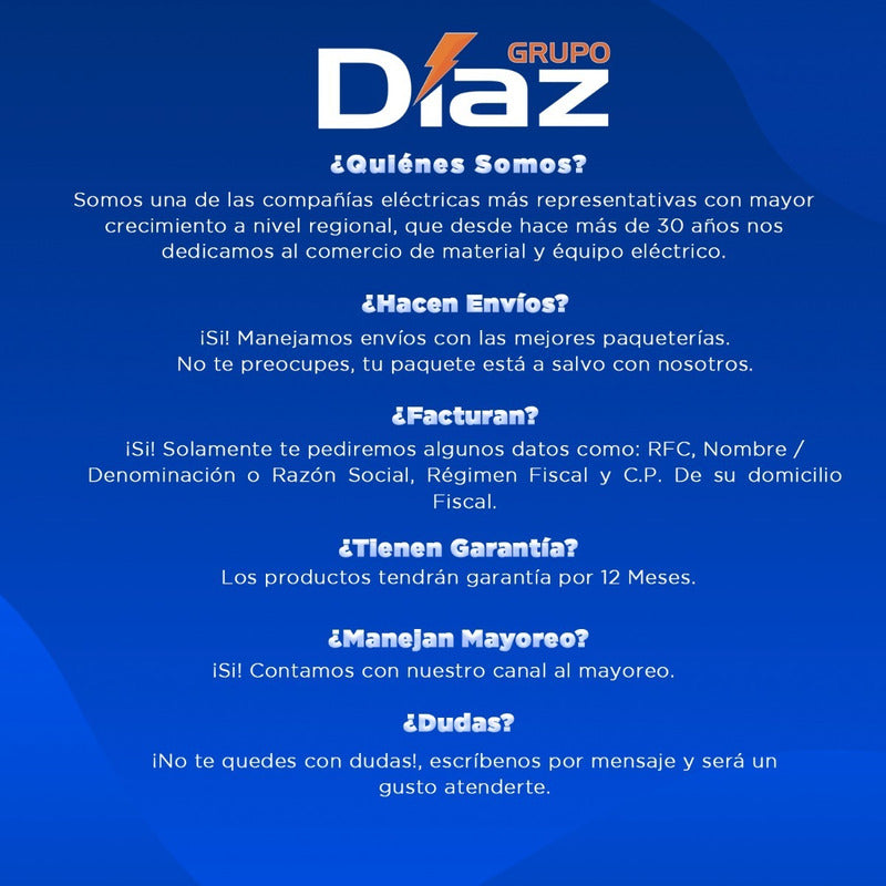 Somos una empresa establecida con más de 20 años en el mercado eléctrico.